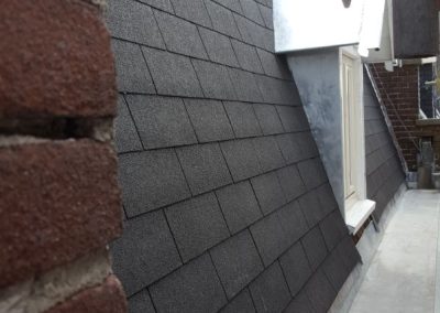 Bij dit project aan de Rhijnvis Feithstraat in Amsterdam hebben we een totale dakrenovatie van het bovendak en voorzijde uitgevoerd. Het bovendak is geïsoleerd met pir-isolatie en hier is een dakbedekking met zwarte leislag gemaakt. Aan de voorzijde zijn de zinken goten en dakkappel vervangen. Ook is er een nieuwe dakshingel in zwarte uitvoering gemonteerd.